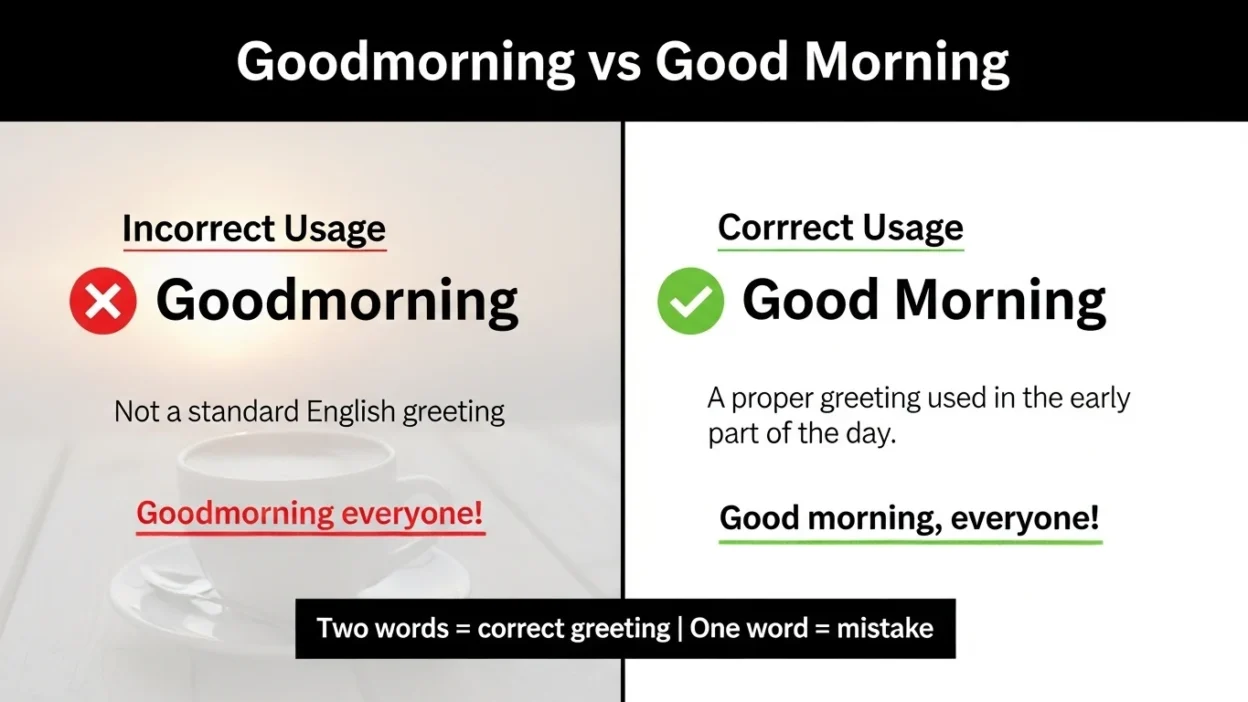 Have you ever wondered whether “goodmorning” or “good morning” is correct? You’re not alone. This is a very common spelling confusion, especially in emails, text messages, and social media posts. Many people write it as one word, while others use two words, and that’s where the confusion begins.