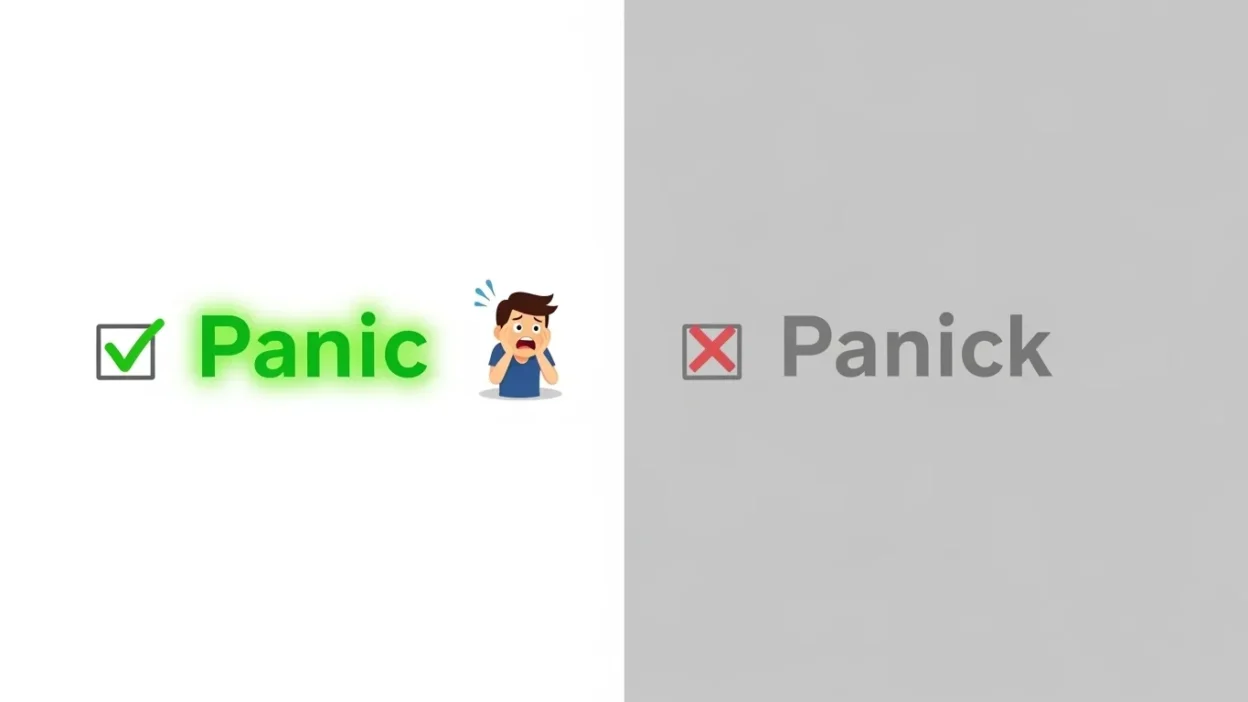 The difference between panic vs panick is simple once you understand the spelling rule. Panic is the correct word and the only accepted spelling in English.
